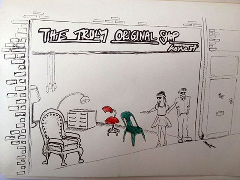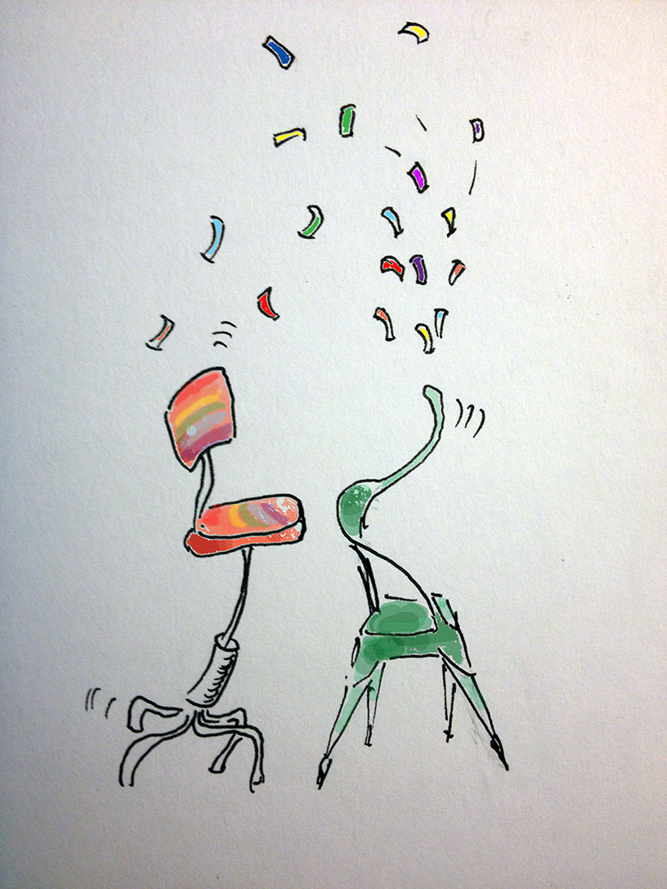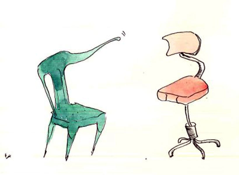 Paul und wer? - Paul und Friedrich. Zwei Stühle Anfang Dreißig, die sich mit dem Dies und Das des Alltags beschäftigen bis sie eines Tages einfach beschließen zu fliehen. Aus Protest. Idee und Umsetzung von Melanie Christina, illustriert von Katharina.